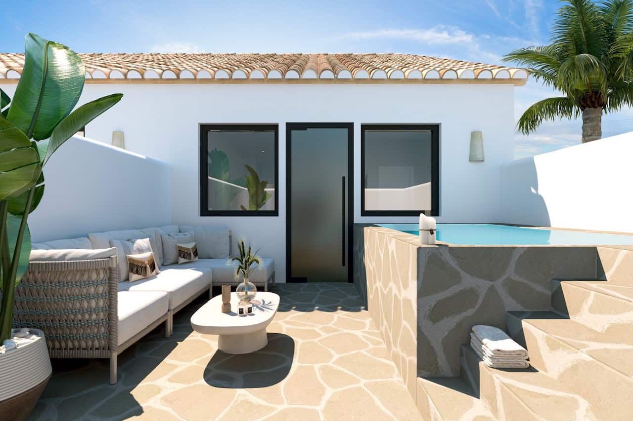 Discover this bright and contemporary townhouse in the Mediterranean! A wonderful, comfortable, and private townhouse in a privileged development. The property features two good-sized bedrooms, two modern bathrooms equipped with Italian showers, and a fully equipped open-plan kitchen integrated into a magnificent and spacious living-dining room, filled with natural light and opening onto a garden with a pool, perfect for enjoying summer in total privacy. The entire home is equipped with air conditioning (heating and cooling) and double-glazed windows, making this home ideal for both winter and summer.