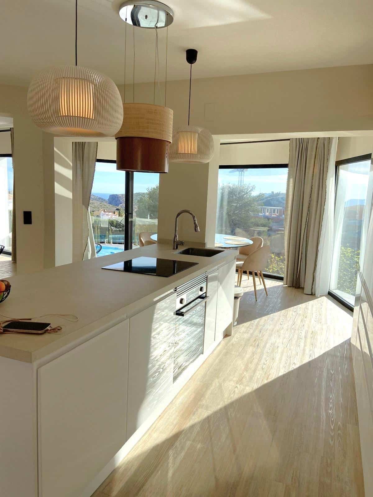 Enjoy the Mediterranean charm in this spectacular Villa in Cumbre del Sol! A beautiful traditional-style Villa, with a magnificent complete renovation in 2024, featuring a contemporary style, in the exclusive urbanization of Cumbre del Sol. This lovely Villa is spread over two floors; on the upper floor, we have two double bedrooms, each with en suite bathrooms, a spacious and bright living-dining room with an open, fully equipped kitchen and access to a lovely terrace with a Jacuzzi and magnificent views of the Mediterranean. On the ground floor, we find a large bedroom and a full bathroom, as well as another living-dining room and a service kitchen that supplies the pool area. Outside, we have a low-maintenance garden, two storage rooms, a great swimming pool to cool off in the summer, with a terrace ideal for enjoying the sun and another chill-out style terrace, perfect for relaxing and enjoying dinners or meals in the summer. The entire villa is equipped with double glazed windows that let in plenty of light, air conditioning (hot/cold) and thermal and acoustic insulation in all walls and ceilings.