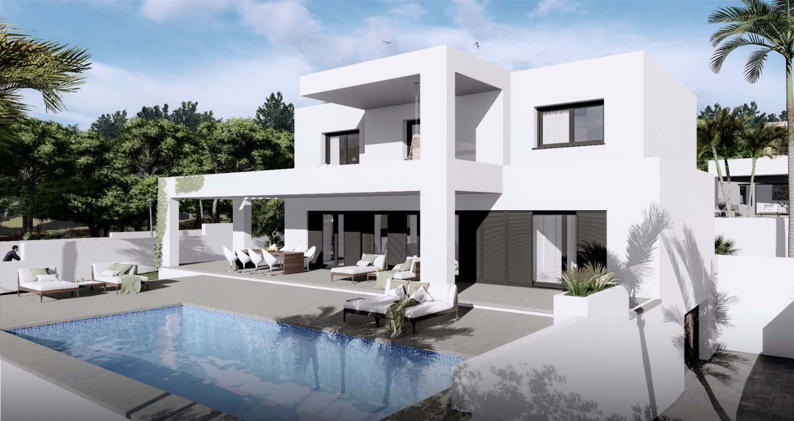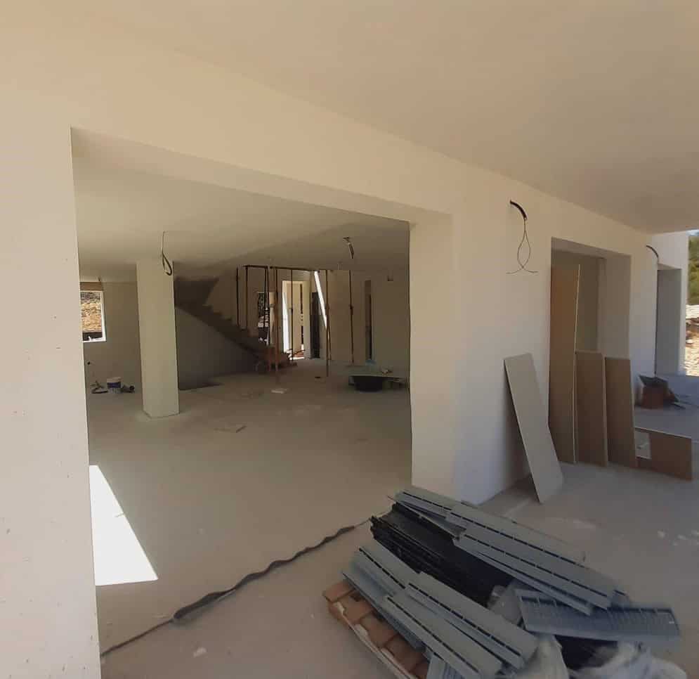 New build in Píver with views of the sea and the Montgo. This new and modern villa will be distributed into 3 floors, connected by interior stairs, with the underground floor being constructed as a large garage that can fit 2 cars. On the ground floor, there will be a nice entrance hall with stairs to the other levels, a stylish and open kitchen with an induction hob, a built-in extractor to the ceiling, a pyrolytic stainless steel oven, a microwave, and an intergrated dishwasher. The open kitchen is connected to the living/dining room, which will have large sliding windows with access to the terrace and pool area. On this same floor, we will have a guest toilet and a bedroom with an en-suite bathroom and dressing room. Upstairs, we will find 2 large bedrooms with dressing rooms and en-suites, both with access to a 27m2 terrace with views of the sea. High quality and energy efficient with an aerothermal system for underfloor heating, hot/cold air conditioning and domestic hot water with a recirculation system. And for your convinience, an automation system that controls the blinds, air conditioning and lights all around the house. Furthermore, water softener to protect your skin and all water installations. The pool will feature RGB chromotherapy and a salt electrolysis chlorinator, which produces chlorine from dissolved salt in water, providing antiseptic properties for the eyes and skin, avoiding the use of highly toxic products. It will also have an automatic pH controller, meaning it will control the levels of chlorine facilitating its cleaning and maintenance whilst preventing water corruption.