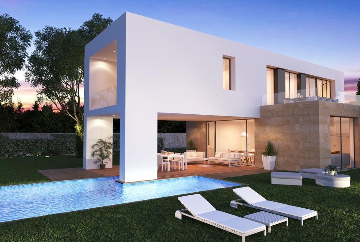 Project for a modern style villa of 219.29 m² construction, on a plot of minimum 1,000 m² (23 plots available to choose), on a new urbanization in Jávea, just 3 Kms from the beach and all amenities. This villa is arranged on 2 floors and comprises of 3 bedrooms, 2 bathrooms, a guest toilet, spacious living & dining room, ample fully fitted kitchen, utility room and large naya. High specification construction including underfloor heating, ducted air conditioning (cold & hot), aluminium double glazed windows with aluminium shutters, video intercom, security entrance door, home automation system for air conditioning and motorized access door for cars. Swimming pool with LED lighting, 48.47 m² exterior terraces and garden with automatic irrigation system & LED lighting.