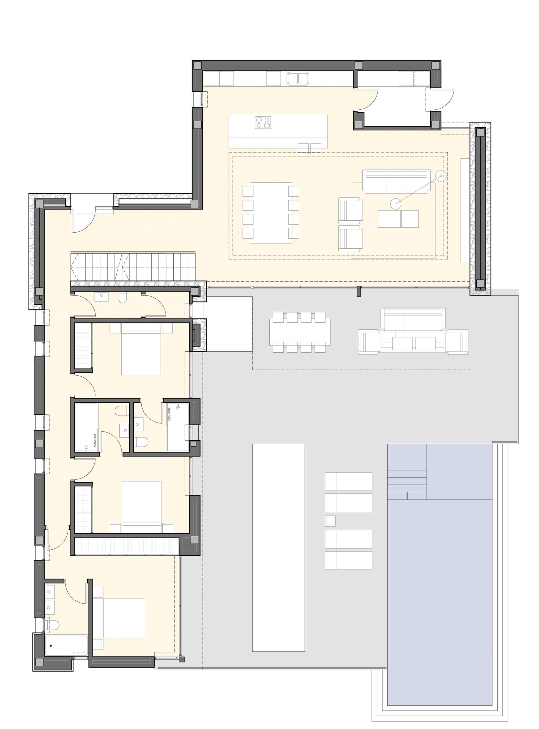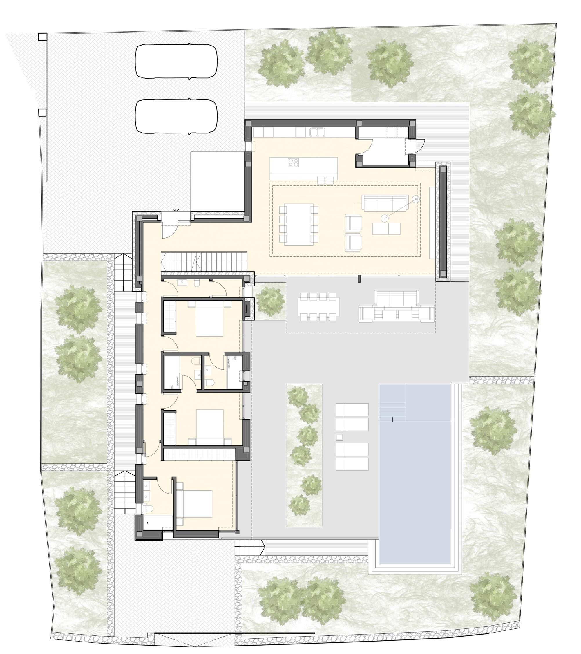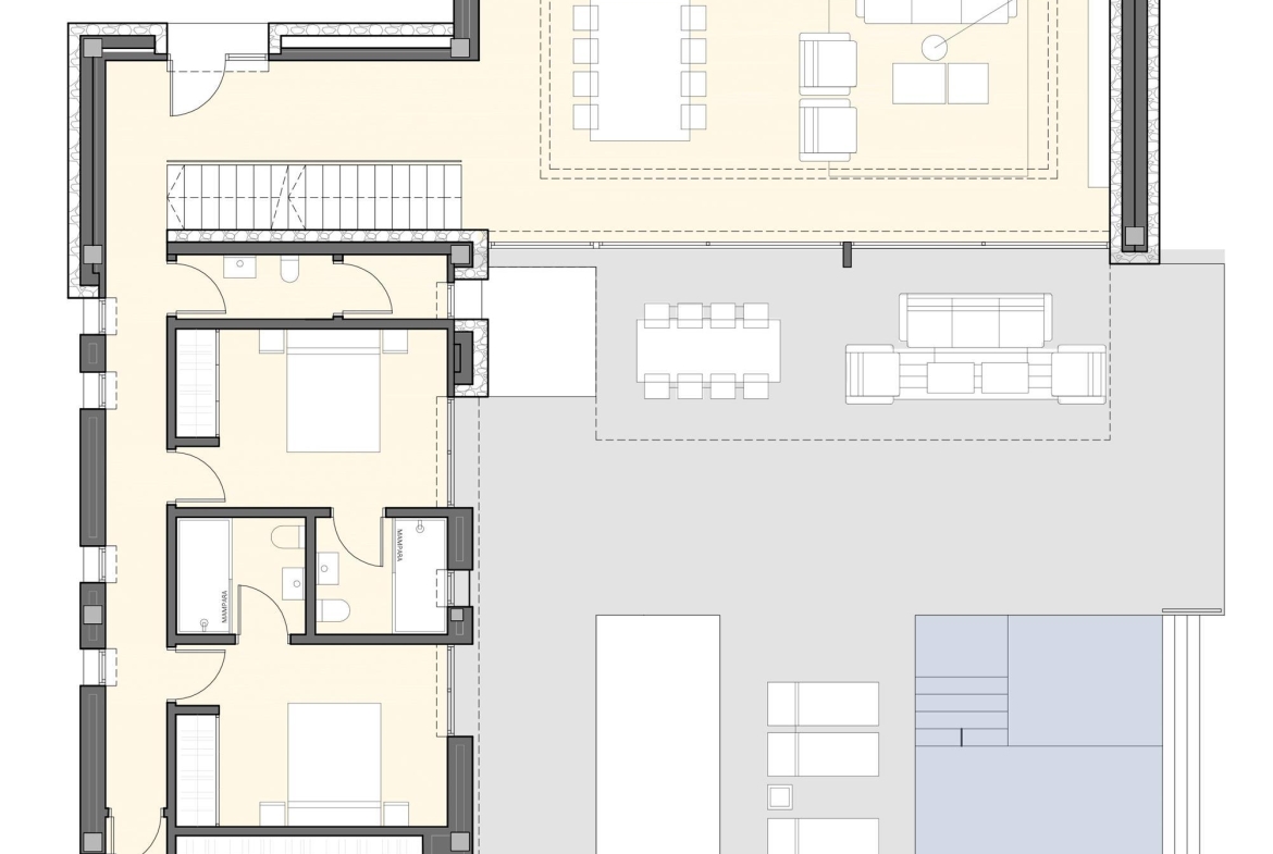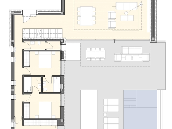 Project for a magnificent modern Villa of 358.06 m² construction, plus 153.20 m² open terraces, on a plot of 939.52 m², situated in a new mini-urbanization in Moraira of only 5 luxury villas, all of them enjoying fantastic sea views! This is the first project of the 5 exclusive villas which will be built in this prestigious location in Moraira, therefore there are 4 more projected villas to choose for the other 4 plots. This villa will be arranged on 2 floors, plus the basement. On the ground floor, a large living & dining room with access to the covered & open terraces in front of the pool; an ample open-plan fully fitted kitchen (including the electrical appliances, Neff brand); 3 double bedrooms (all of them with en-suite bathrooms) and a guest toilet. On the upper level, the master bedroom with en-suite bathroom and access to a private terrace. And on the basement, an ample garage with automatic entrance door. The villa will be built to the highest standards including ducted air conditioning (cold & hot), underfloor heating, security entrance door, video intercom, alarm system, aluminium double glazed windows and motorized blinds. Outside, a lovely infinity pool with large terraces and garden with trees & automatic irrigation system.