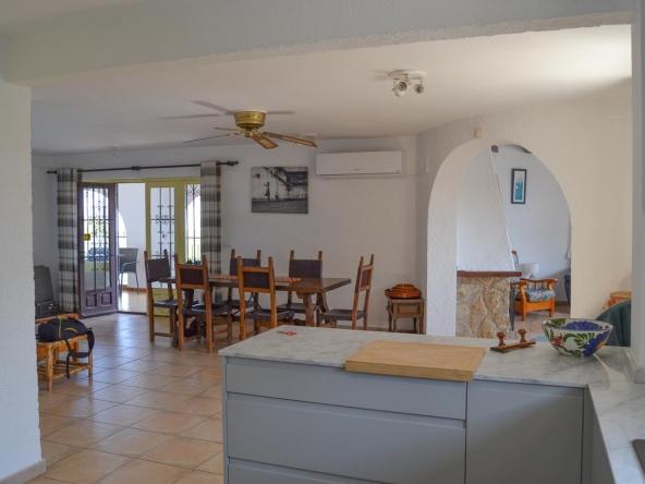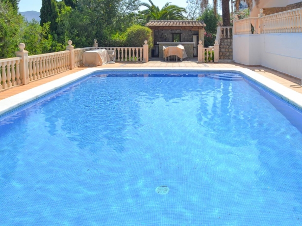 Splendid villa in Monte Pedreguer, with magnificent open views to the sea and valley. The property has a guest apartment, which could be rented on vacation, a great opportunity for investors. This beautiful villa is distributed over two floors. On the main floor, we find an entrance hall that leads to the fully equipped kitchen and open to the living / dining room. In said room we will see the fireplace and the great amplitude of this room and luminosity. From the spacious living room, we have direct access to the naya, where you can enjoy the magnificent views of the valley and the sea. A fantastic barbecue area to enjoy those summer nights. On the same floor we will see the three bedrooms, two bathrooms, both with shower. A laundry and storage room. If we continue to the ground floor, we will find the entrance hall, a large fully uncovered terrace, a spacious living/dining room with an open, fully equipped and functional kitchen. Three other bedrooms, one of them ensuite with a shower, as well as another family bathroom with a shower. On this floor, we will see another storage room, which could easily be converted into another bathroom. It should be noted that one of the bedrooms has access to a covered terrace, perfect for those sunsets. The property has a tourist license, therefore it is a good investment to be able to rent it. A large pool of about 12*6 meters, surrounded by large terraces. Nice barbecue area with summer kitchen and a covered bar. The villa enjoys a great tranquility and a lot of privacy. Located on a sloping plot.